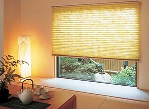 Шторы или жалюзи плиссе представляют собой горизонтальную конструкцию из обработанной ткани, собранной плотными складками. Регулировка таких жалюзи происходит с помощью шнура.